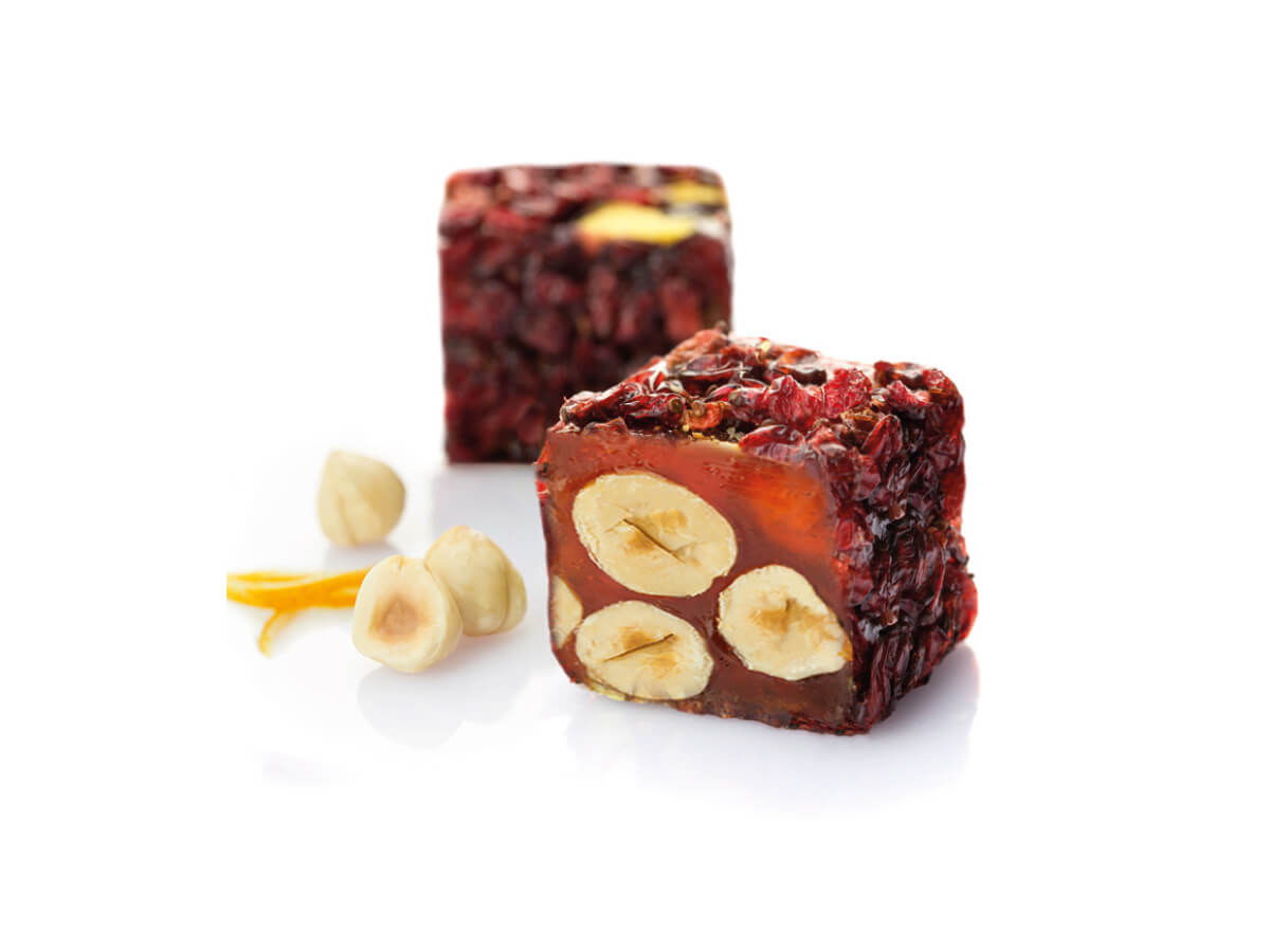 Orange Flavored Hazelnut Turkish Delight with Barberry Coating